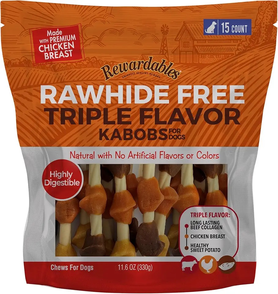 Rewardables Flavor Kabobs for Dogs – 15 count with real chicken, beef, and sweet potato for a tasty, healthy reward.
